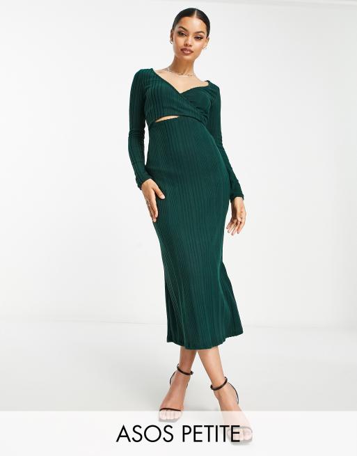 Asos Design Petite Supersoft Long Sleeve Wrap Front Maxi Dress In Bottle Green Asos